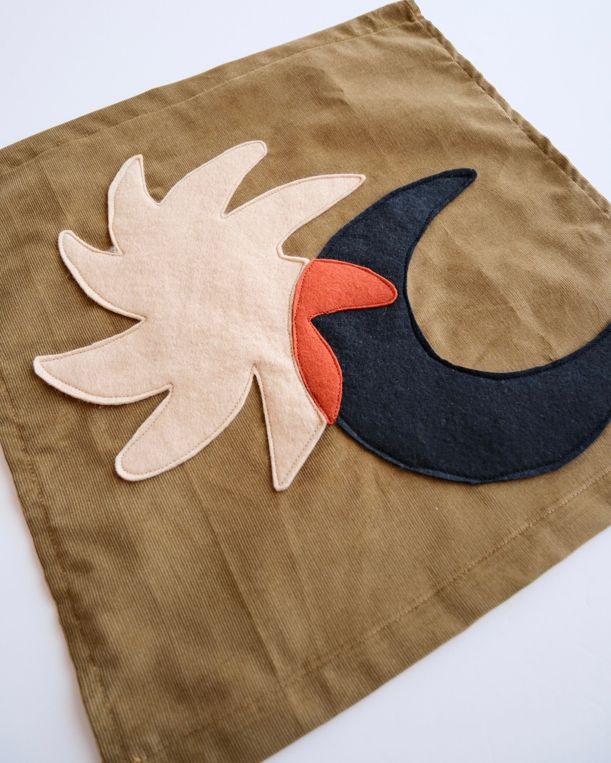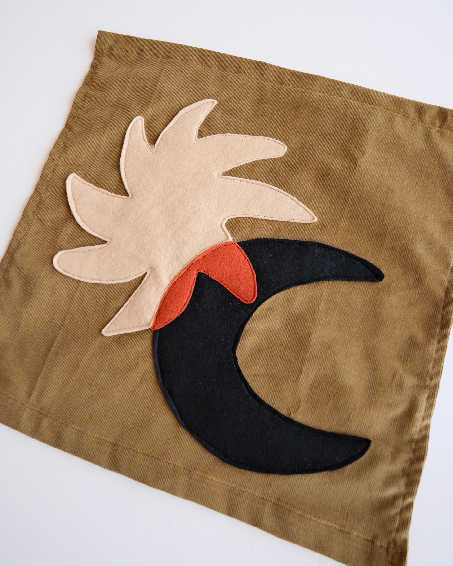 フェルトとコーデュロイ生地を切り貼り縫い